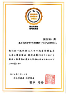 窓ガラス用遮熱コーティングZEROCOATが受賞